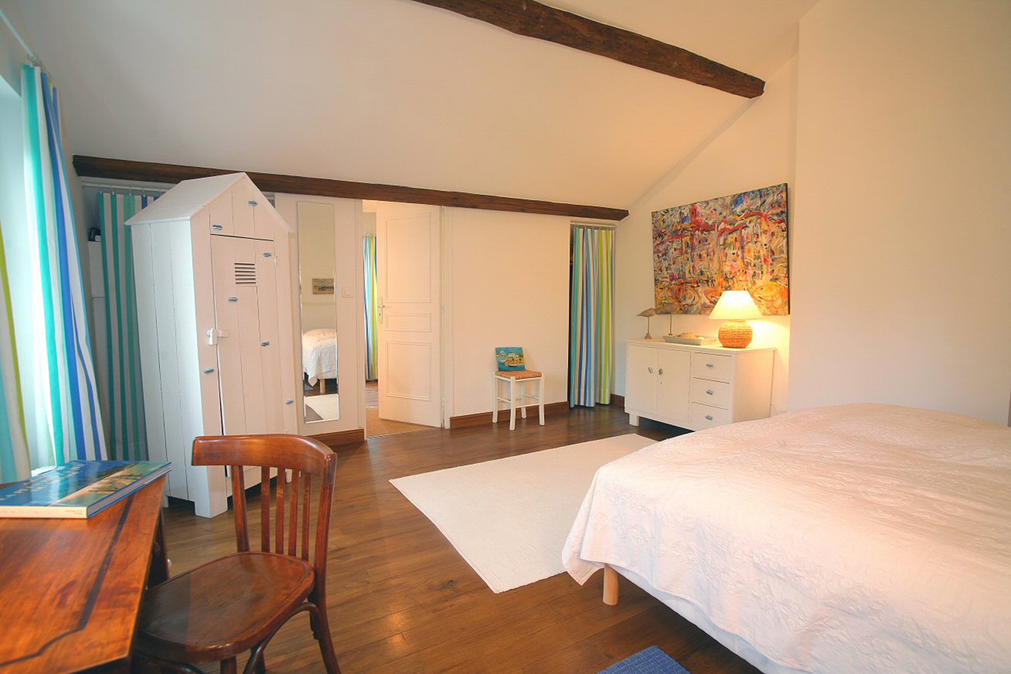 Au maximum 6 personnes (8 avec lits supplémentaires) se partagent 250 m2 répartis sur 3 étages. Pour le petit-déjeuner, un plateau garni de confitures faites maison, de croissants frais et de baguettes sera mis à votre disposition dans la cuisine.